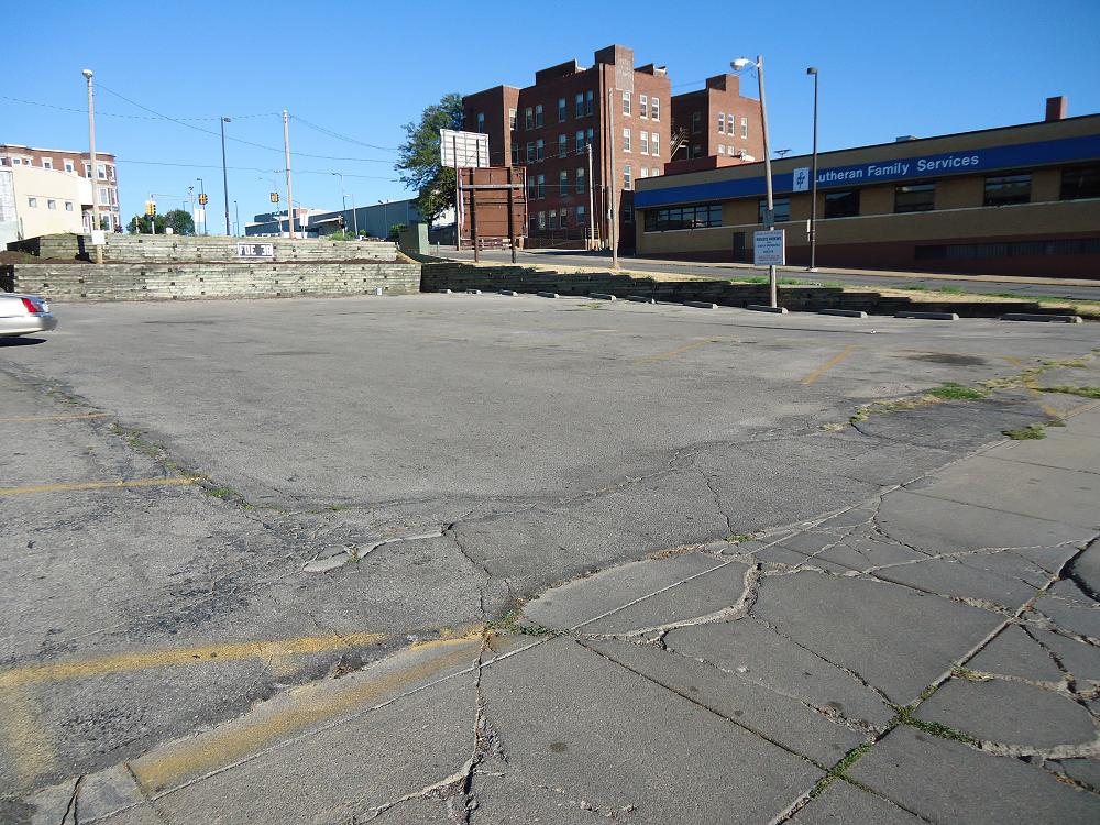 2 parking lots , south side of the building and west across 24th Street.