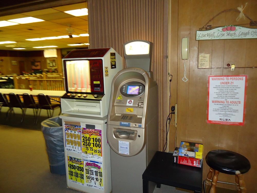 There is an ATM in the Downstairs Bar area.