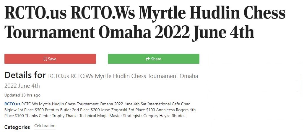 The Myrtle Hudlin Chess Tournament Announcement will appear in the Omaha World Herald